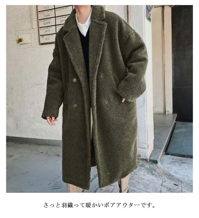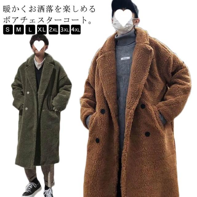 ボアコート ロング メンズ チェスターコート メンズ 毛皮コート ロングコート オーバーサイズ ゆったり ドロップショルダー アウター もこもこ あったか 秋冬 冬服