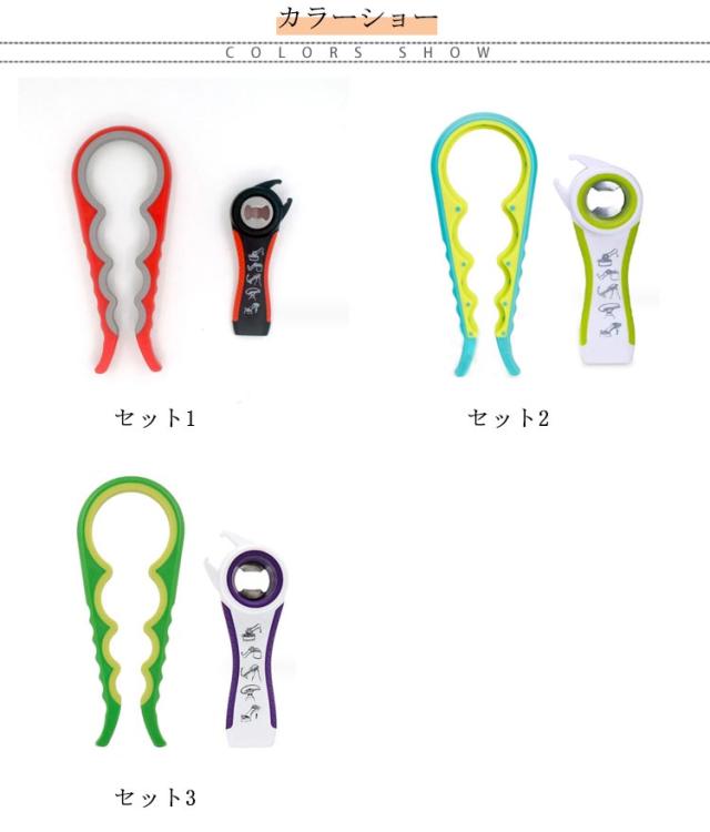 | 開けにくいペットボトル・ビンの蓋が簡単に開く! 大・小2つのセットで色んなサイズの蓋に対応できます。 大:4in1 1つで4サイズのフタに対応!ビール瓶、ボトル、調味料瓶などの蓋が楽々オープンできます。 小:4in1 蓋開け、蓋めくり、栓抜き、プルトップ開けの4つの機能を搭載 滑りにくいように凹凸のあるグリップで子どもや女性、年配の方でも楽に開けられる 使い方はとても簡単で、力の弱いお子様や高齢者でも簡単に使えます。 | |
