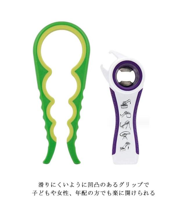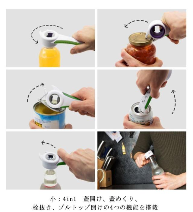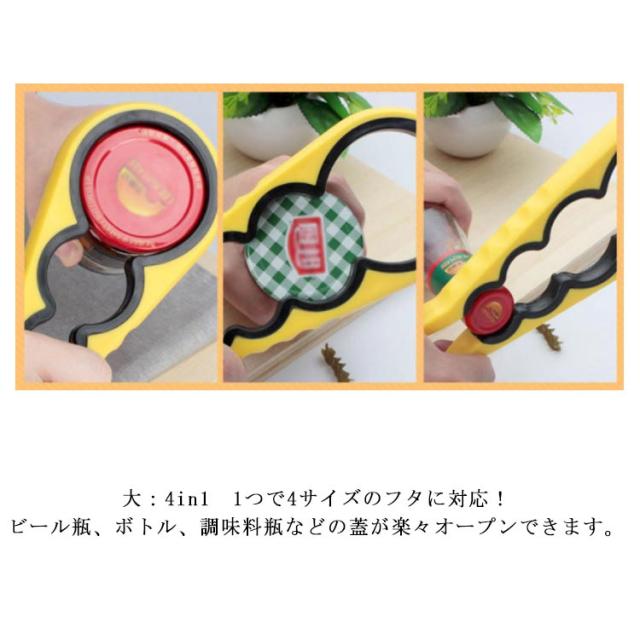 ふた開け オープナー 4in1 栓抜き 瓶オープナー 蓋開け ジャーオープナー ボトルオープナー 飲料 プルトップ キャップ 調味料 ビンの蓋 多機能 2個セット キッチン用品 送料無料