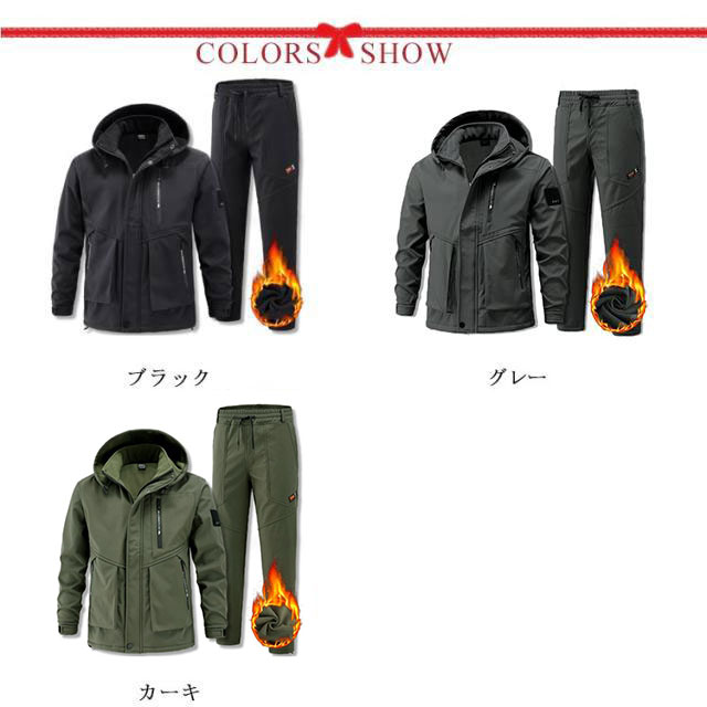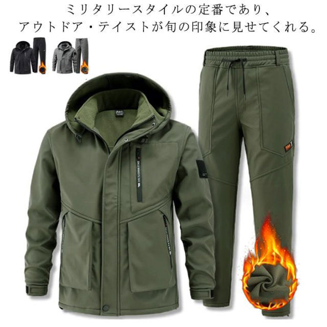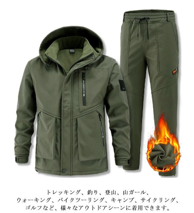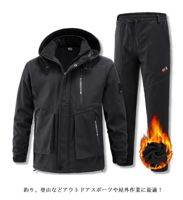 裏起毛 裏ボア マウンテンパーカー マウンテンジャケット 登山服 防風 暖かい 厚手 防水 防寒 上下セット メンズ アウター 2点セット メンズ ワークパンツ 長ズボン 防寒着 作業パンツ ハイキングジャケット 自転車 ゴルフ アウトドア スポーツ 撥水