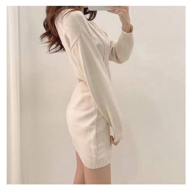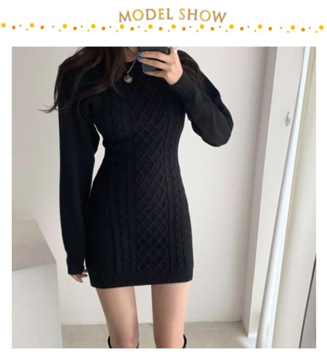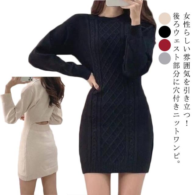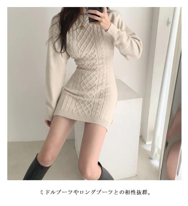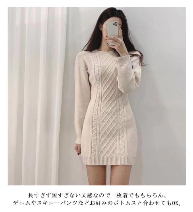 ニットワンピース 冬 ミニ丈 タイトワンピース ミニ レディース 秋冬 ニット ワンピース 膝上丈 長袖 スリム 細身 ニットワンピ ラウンドネック ミニワンピース ケーブル編 ケーブルニット 大人 可愛い きれいめ おしゃれ セクシー フェミニン S M L XL