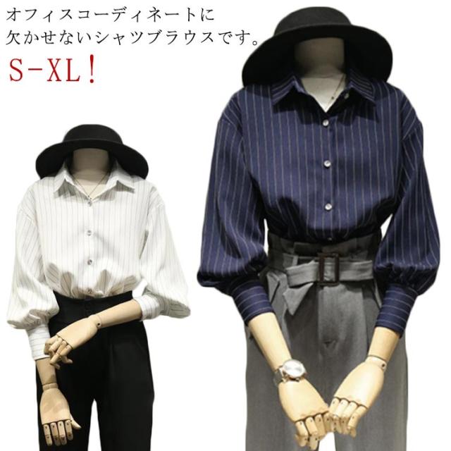 レディース ブラウス 冬 春 秋 ストライプ柄 ロングシャツ 襟付き 長袖 トップス ワイシャツ カジュアル きれいめ 上品 エレガント おしゃれ お出かけ デイリー S M L XL 大きいサイズ きれいめ OL 通学 通勤 オフィス フォーマル ビジネス 事務 送料無料