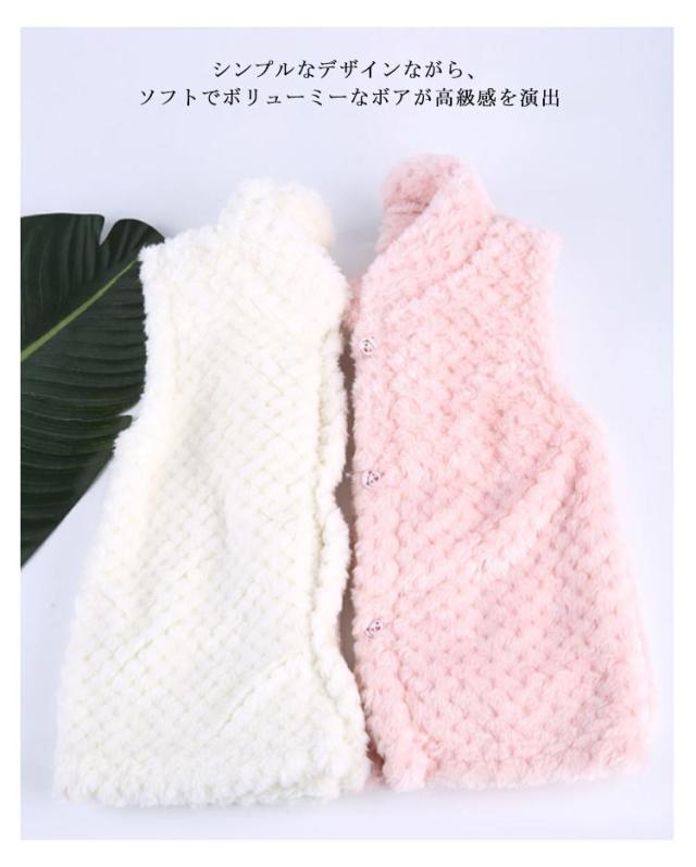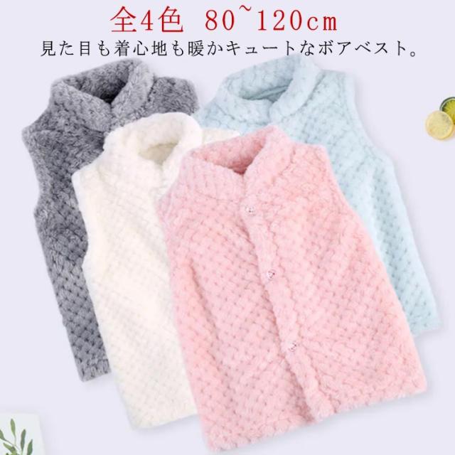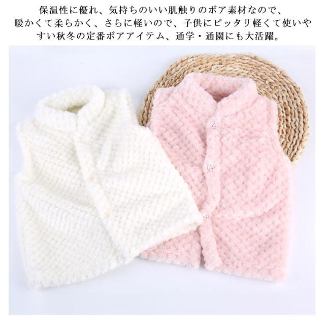 ベスト ボアベスト キッズ ノースリーブ 袖なし アウター ベスト もこもこ ふわふわ ジュニア 上着 防寒 羽織り 子供用 女の子 男の子 トップス ボア 単色 無地 シンプル 暖 保育園 幼稚園 通園 無地 可愛い 送料無料