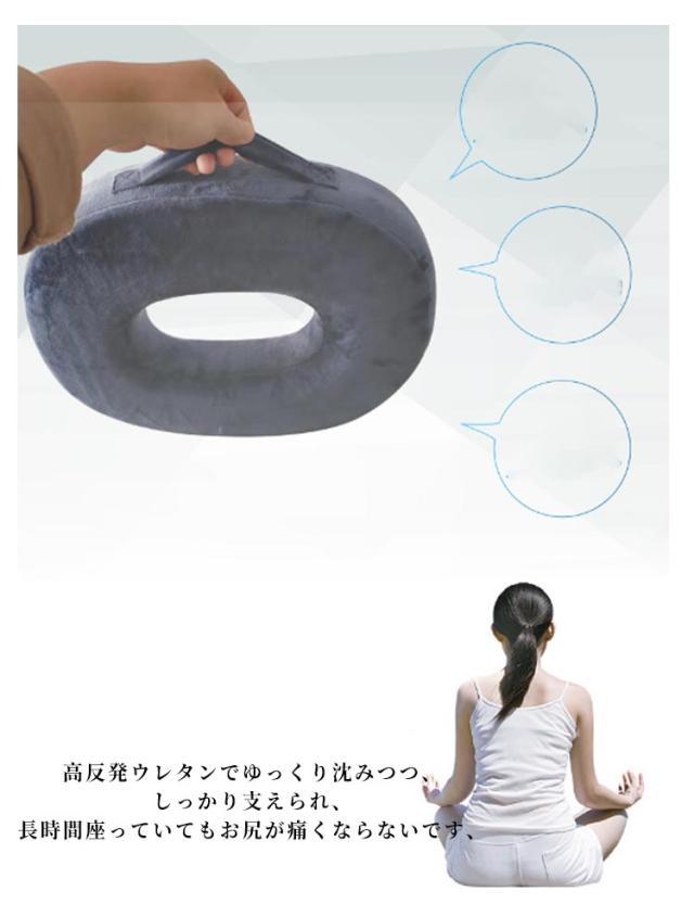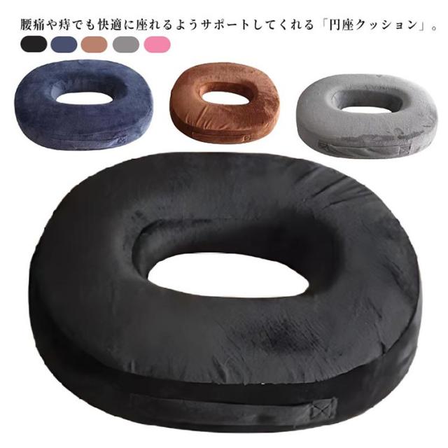 | 腰痛や痔でも快適に座れるようサポートしてくれる「円座クッション」。 持ち手付きで移動も簡単にでき、ご自宅、職場や車内でも手軽に使えてとても便利です。 高反発ウレタンでゆっくり沈みつつ、しっかり支えられ、長時間座っていてもお尻が痛くならないです、 楕円形デザインのドーナツ型クッションで、中心に合わせ深く座ることで骨盤を固定し体圧を分散。 優しい感触の生地を使用しているので、年中快適に使用可能。 カバーは取り外して洗えるのでいつでも清潔にお使いいただけます。 | |