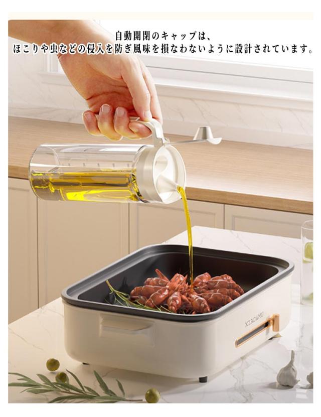 | 液体調味料やオイルの保存にぴったりなガラスのボトルです。 自動開閉のキャップは、ほこりや虫などの侵入を防ぎ風味を損なわないように設計されています。 耐熱ガラスで、壊れにくく、から300°までの液体を保持できます。 ワンタッチでボトルキャップを片手で押すと、オイルポットを開くことができます。 キャップにシリコンシールを使用して、漏れを防ぎ、ご安心にお使えいただけます。 ガラス瓶の口が大きく、詰め替えが簡単なので、経済的かつ環境に優しい使い方ができます。 透明な容器は中身や残量が一目で分かり、ボトル部分には目盛り付きなので計量も簡単です。 | |