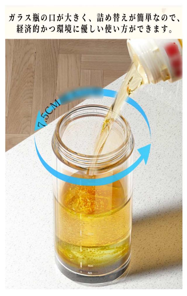 オイルボトル お洒落 キッチン用品 オイル差し 液だれしない ガラス製 油差し オリーブオイル 調味料入れ 料理用 スタ付き 洗いやすい 目盛り付き 料理用 漏れ防止 家庭用