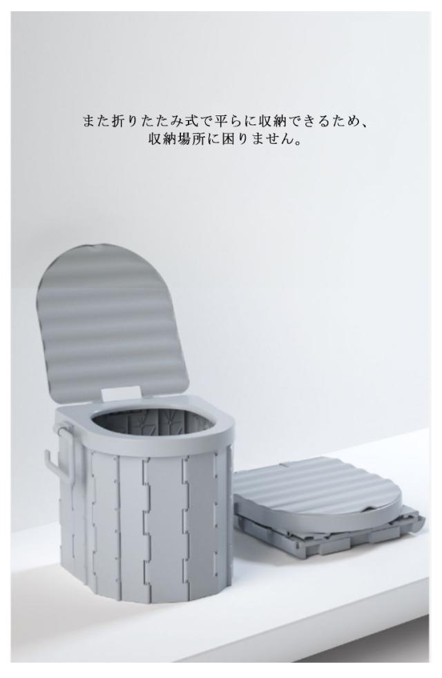 | 便座一体型折りたたみ式ポータブルトイレ アウトドア、部屋や車の中、災害、断水の際に大活躍します。 人間工学に基づいて設計されているので小さなお子様からお年寄りの方まで安心してお使いいただけます。 ゴミ箱としてもお使いいただけます。 介護用トイレ・屋外用トイレ・キャンプ・車用トイレ・登山・釣りなど幅広いシーンで活躍します。 水洗いできるのでいつでも清潔を保てます。 軽量設計なので持ち運び、組立て楽々 力の弱い方、女性、小さなお子様でも簡単に組立てることができます。 また折りたたみ式で平らに収納できるため、収納場所に困りません。 | |
