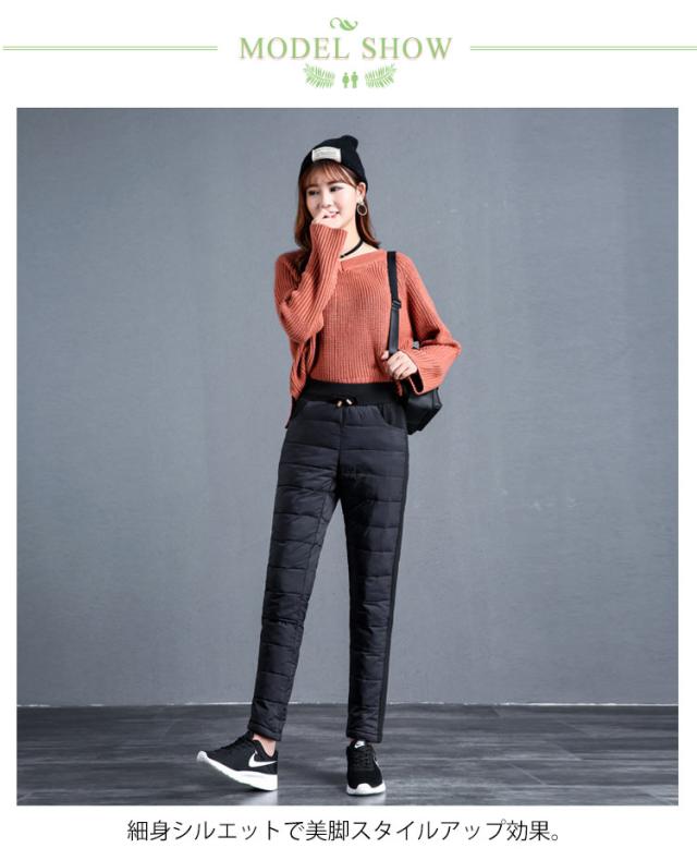 パンツ ダウンパンツ レディース ダウン80% ゴルフパンツ ジョガーパンツ ゴルフウェア スキニー 冬 ダウン キルティング ウエストゴム 軽量 黒 極暖 暖かい 蓄熱 暖パン あったか アウトドア 防寒 防風