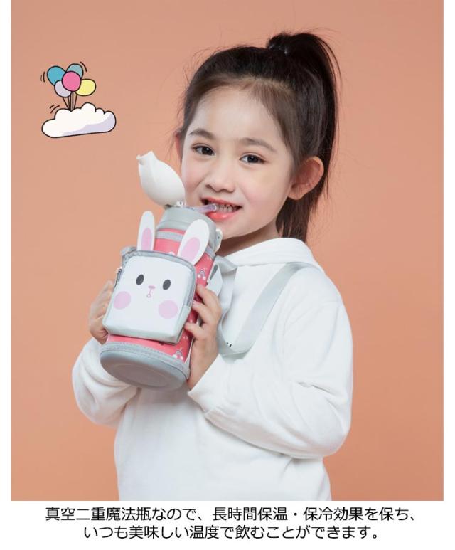 3way 水筒 キッズ 直飲み ストロー ワンタッチ 550ml コップ付 大容量 保温 保冷 魔法瓶 ボトルカバー ステンレス マグボトル 男の子 女の子 ストラップ付 通園 通学 幼稚園 保育園 入園祝い 入学祝い 誕生日