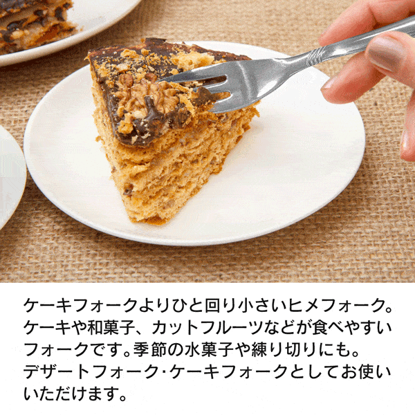 | お菓子を食べるときに 最適なフォーク。 丈夫なステンレス製で、 食洗機対応。 | |