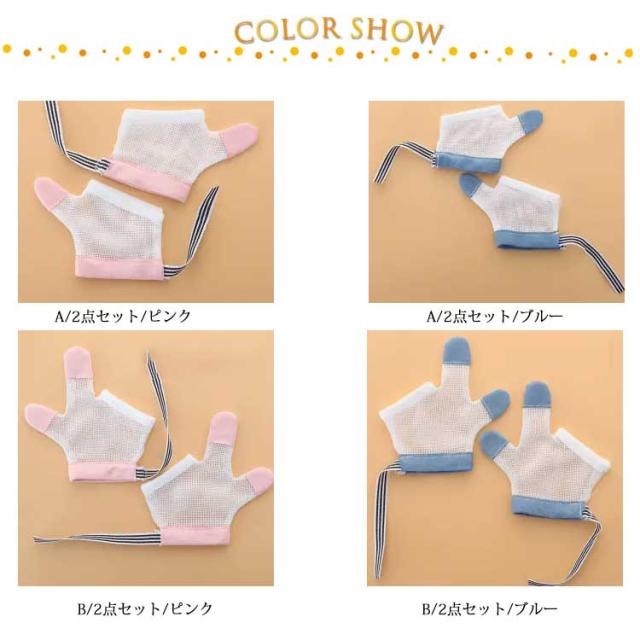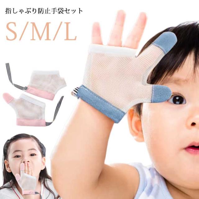 指しゃぶり 防止 手袋 セット てぶくろ おしゃぶりガード 爪噛み防止 癖 補正 歯がため メッシュ 通気 赤ちゃん ベビー 幼児 子ども 子供 やめさせる 指しゃぶり対策 矯正器 悪習癖 防止グッズ 指しゃぶり対策 柔らかい ストレスフリー S M L 送料無料