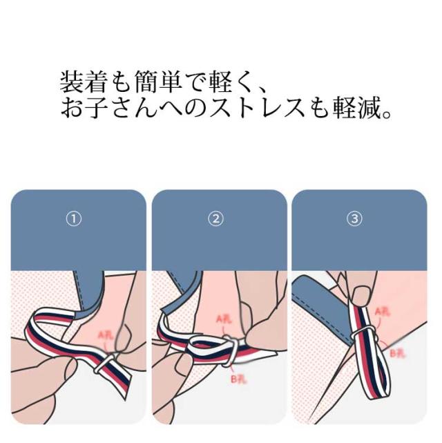 | サイズについての説明 | S:掌囲13cm/目安体重6-10kg/年齢6-18ヶ月 M:掌囲14cm/目安体重8-15kg/年齢15ヶ月-3歳 L:掌囲15cm/目安体重15-22.5kg/年齢3-5歳 ※サイズ表の実寸法は商品によって1-2cm程度の誤差がある場合がございます。 |