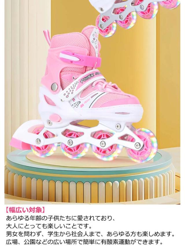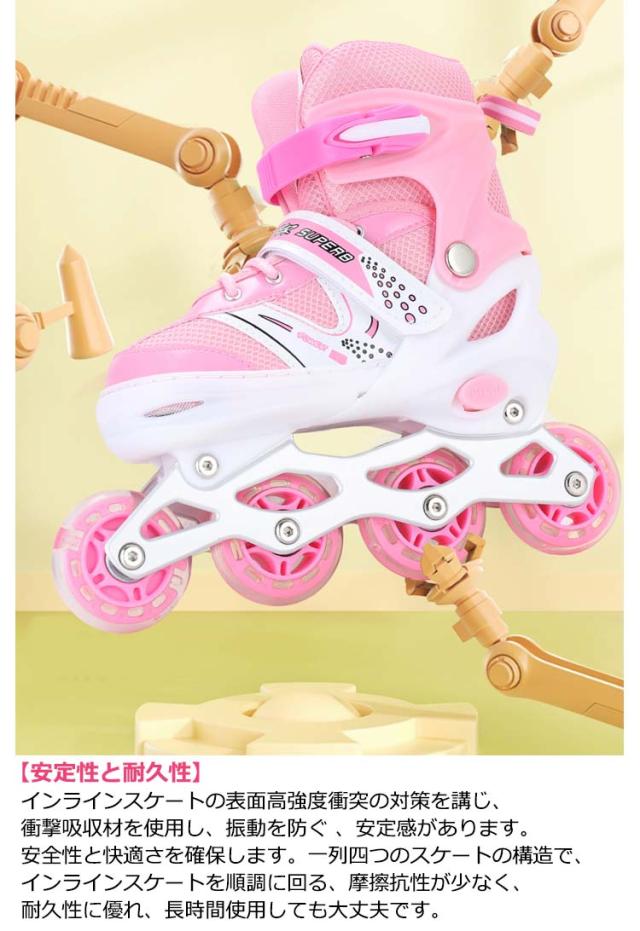 インラインスケート 大人 子供 ジュニア インラインシューズ ローラースケート キッズ フィギュアスケート 女の子 男の子 サイズ調整可能 1つ光るウィール 初心者向け 子供の日 誕生日 プレゼント ローラーブレード スポーツ 玩具 おもちゃ