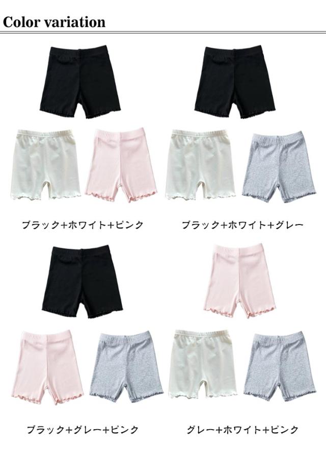 オーバーパンツ キッズ ジュニア アンダーパンツ 3枚セット インナーパンツ 1分丈スパッツ 一分丈スパッツ 綿 コットン 1分丈 スパッツ ガールズ ペチパンツ アンダーウェア フリル 幼稚園 保育園 通学 通園 学生 制服 可愛い おしゃれ きれいめ 気持ちいい
