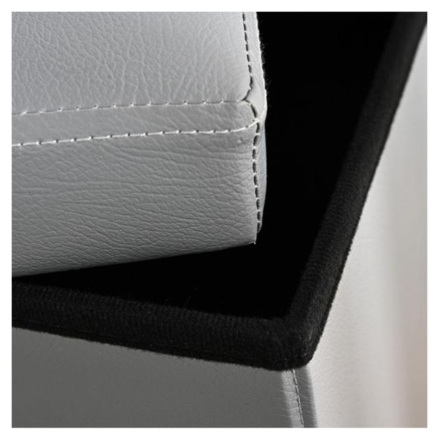 | しっかりとした座り心地のスツールなので、日常の色んな場所にある「ちょっと座りたい」を叶えます。 耐荷重220kgの安全設計でリビングや玄関の椅子としてだけでなく、オットマンやサイドテーブルとしてマルチに活躍します。 普段読む本や雑誌、生活感の出てしまう雑貨類、季節ものの衣類など様々なものを収納して、スタイリッシュに片づけられます。 しっとりとした風合いのPUレザー生地を使用し、セミマットの落ち着いた雰囲気でよりスタイリッシュなお部屋に。 | |