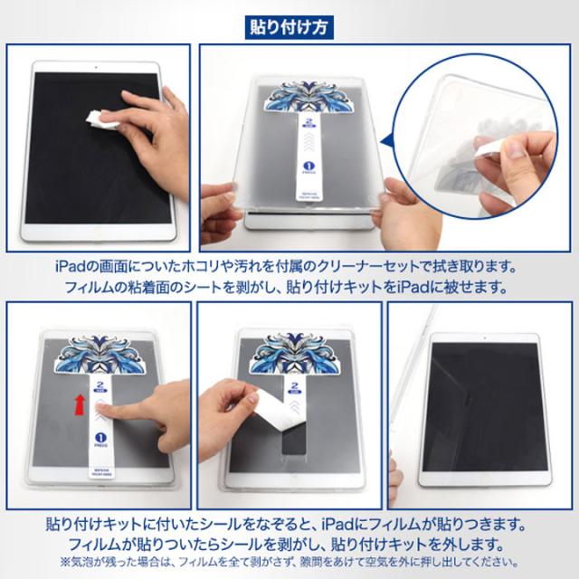 iPadに合わせたサイズで作られたキットを被せるだけで、フィルムの位置がズレずに綺麗に貼りつけることができます。