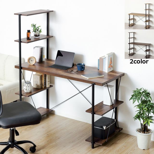 サイドに本や小物も置けるワイドなラック付きデスク!