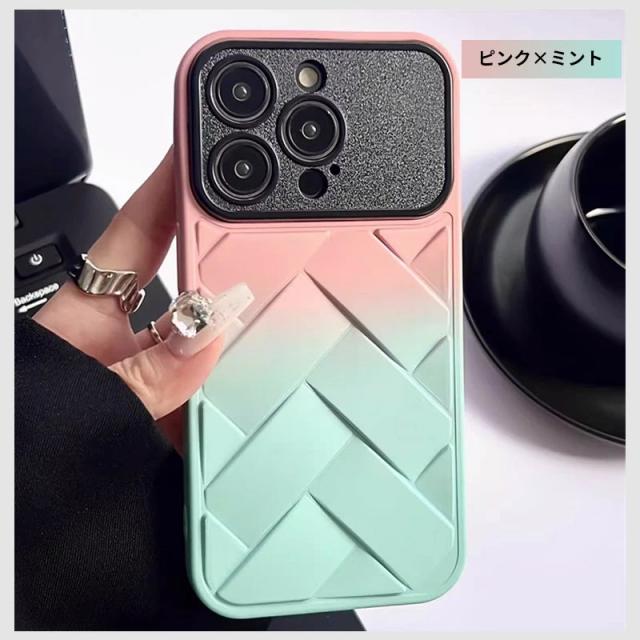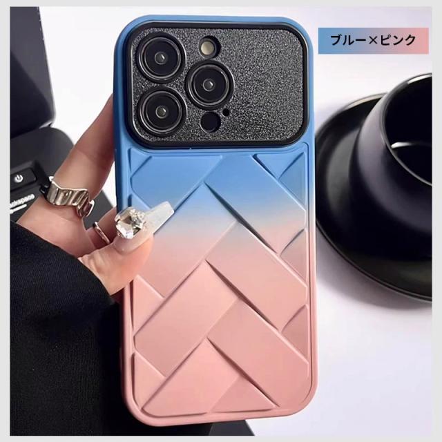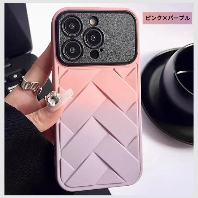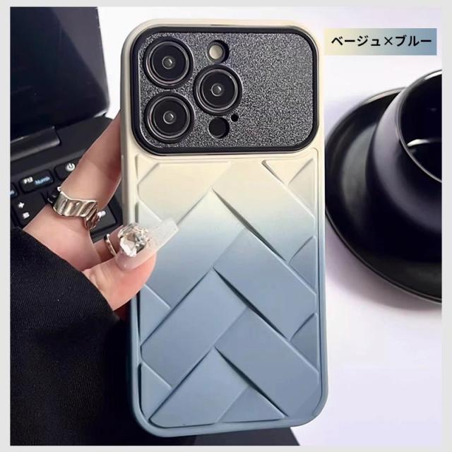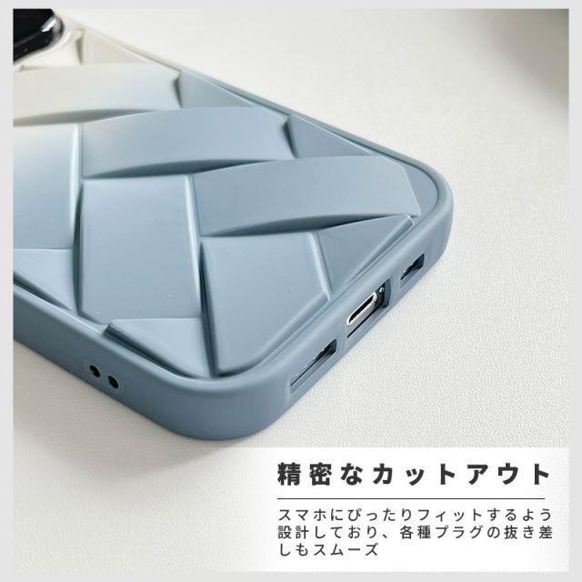 ?素材:PUレザー+TPU ・編み込み調 編み込まれた背面が高級感を演出手に持ちやすく滑らかな手触りが心地よいケース