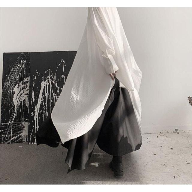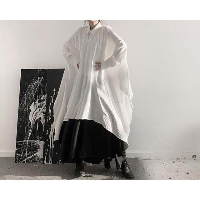 | サイズについての説明 | レイヤードスタイルのモード系えもガールえもボーイの定番アイテム大きめシルエット 春夏秋冬オールシーズン活躍、ビッグシルエットロングシャツ! レディースもメンズもユニセックスで使える男女兼用マイティトップス トレンドのアシンメトリーでフレアなライン。変形デザインで目立ちます。 ワンランク上のモード系コーデが完成するだけじゃなく、オーバーサイズだから体型カバーやスタ |