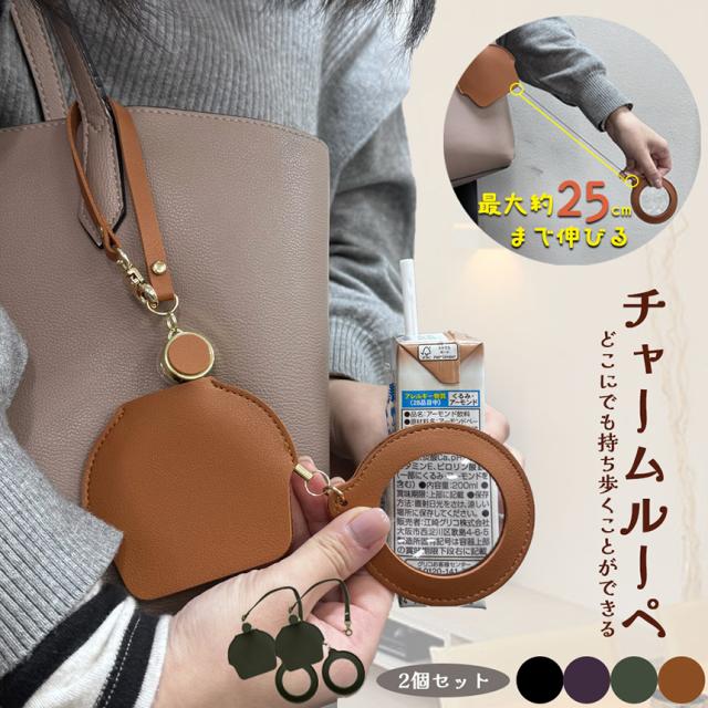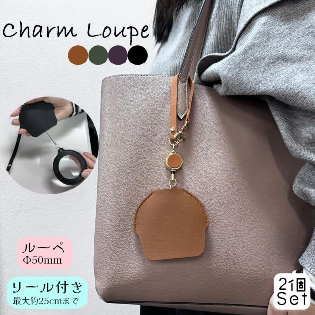チャームルーペ ルーペ バッグチャーム 2個セット 全4色 拡大鏡 虫眼鏡 ストラップ リール付き 虫メガネ おしゃれ読書 新聞 観察 精密作業