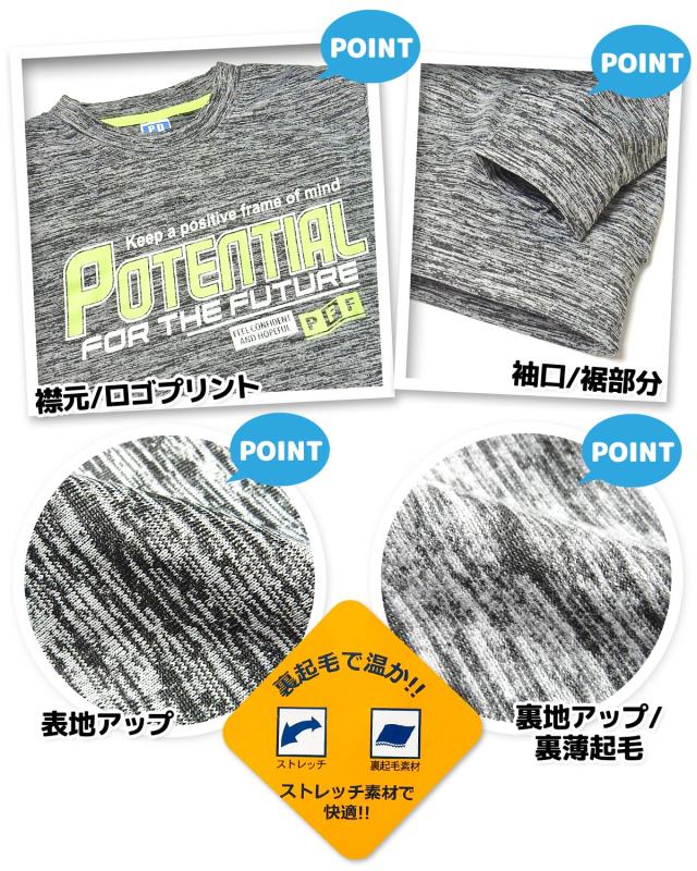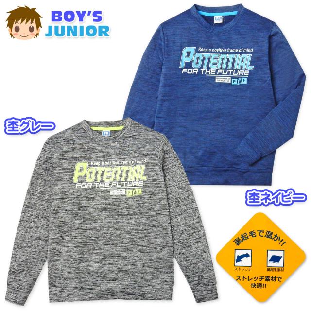 【送料無料】男児 ジュニア 裏薄起毛 長袖 Tシャツ あったか ストレッチ 伸縮性 ロゴ 杢カラー 子供服 男の子 nw-1212【メール便対応】