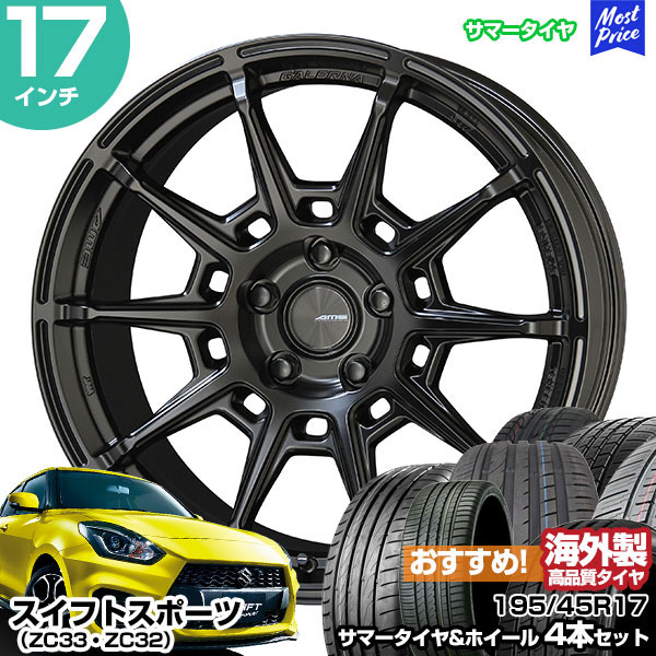 スイフトスポーツ ZC33 ZC32 17インチ 195/45R17 おすすめ サマータイヤホイール 4本セット ガレルナ レフィーノ 17インチ 7.0J 48 5H114.3 MATTE BLACK | AME