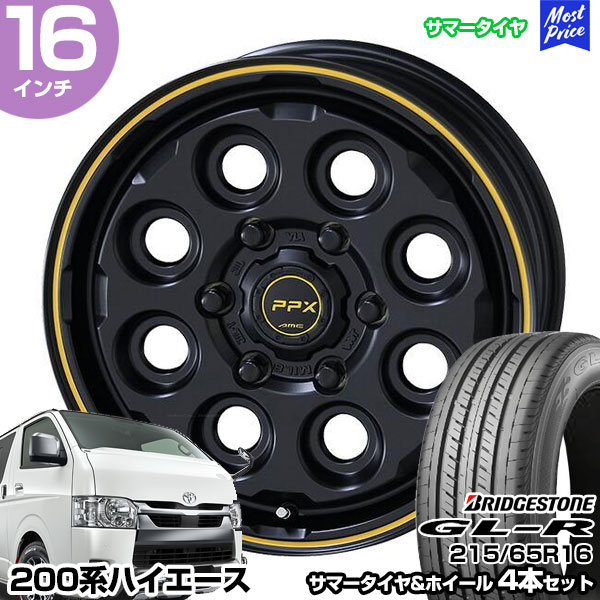 ハイエース 200系 16インチ 215/65R16 ブリヂストン GL-R サマータイヤホイール 4本セット PPX MIL:8 16インチ 6.5J 38 6H139