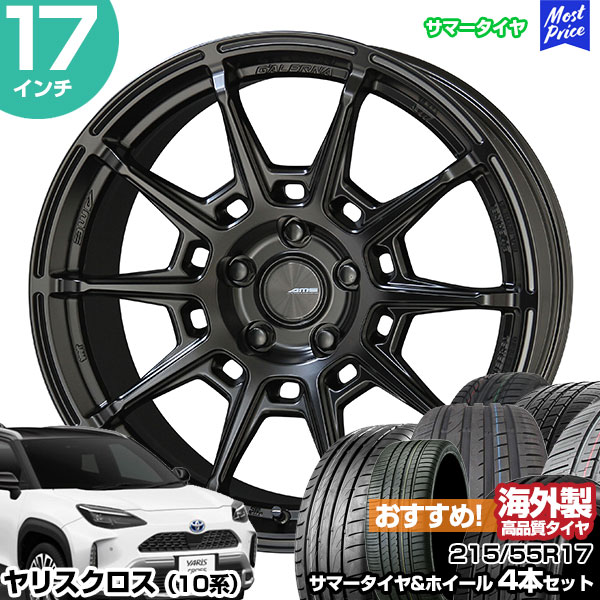 ヤリスクロス 10系 17インチ 215/55R17 おすすめ サマータイヤホイール 4本セット ガレルナ レフィーノ 17インチ 7.0J 48 5H114.3 マットブラック AME