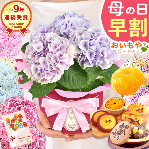 母の日 早割 花とセット 花 プレゼント 花とセット 生花 鉢植え 送料無料 選べる アジサイ 紫陽花 あじさい 4号 どら焼き スイートポテト サブレ みかんゼリー おいもや 母の日 花とセット 母の日 ギフト 母の日 花ギフト 鉢花 母の日の花