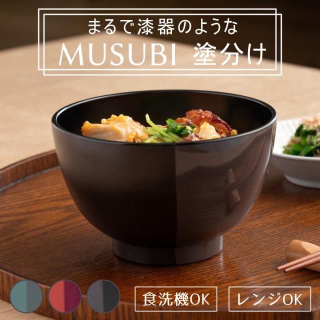 汁椀 500ml 山中塗 MUSUBI 塗分け 内黒 ( 食洗機対応 電子レンジ対応 日本製 お椀 椀 プラスチック製 軽い 割れにくい 小うどん 丼ぶり 子ども お年寄り おしゃれ )