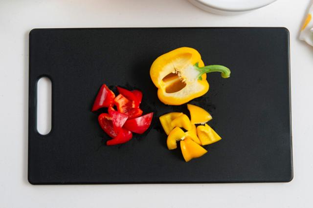 ●日本点字図書館推奨の食材がはっきり見える黒い抗菌まな板です。