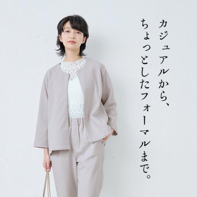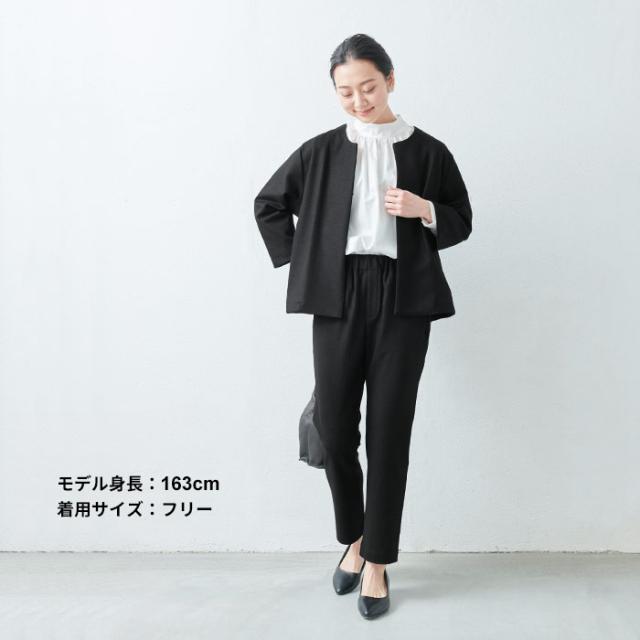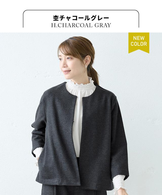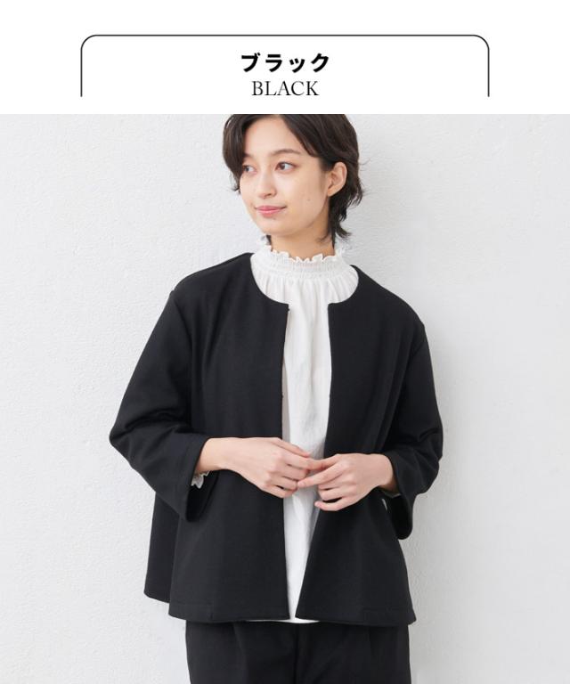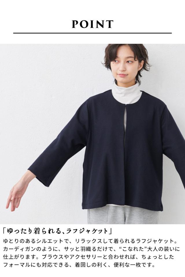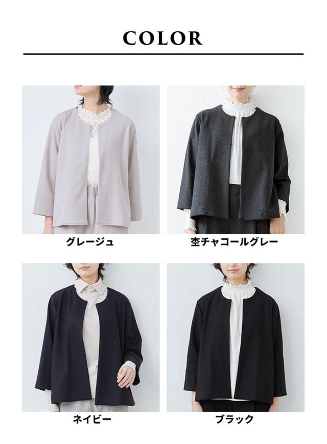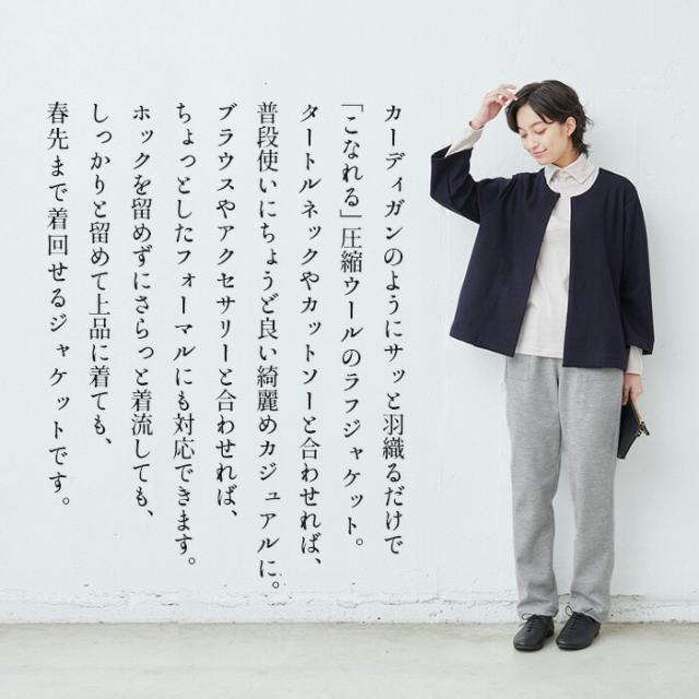 圧縮ウール100% こなれジャケット 日本製 / フォーマル ジャケット レディース 入学式 卒業式 40代 50代 30代 女性 ファッション ノーカラー ラフ 楽 紺 黒 七五三 母 ママ 仕事 オフィス ミセス ウール 大きめ ゆったり ナチュラル 冬 秋 暖かい