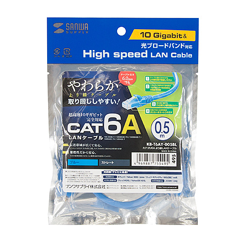 超高速10ギガビットイーサネット完全対応、より線仕様のCAT6A LANケーブル