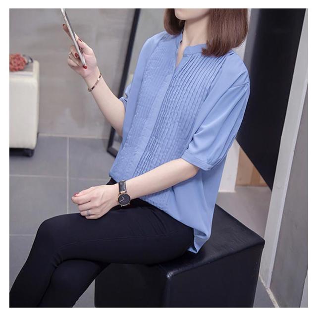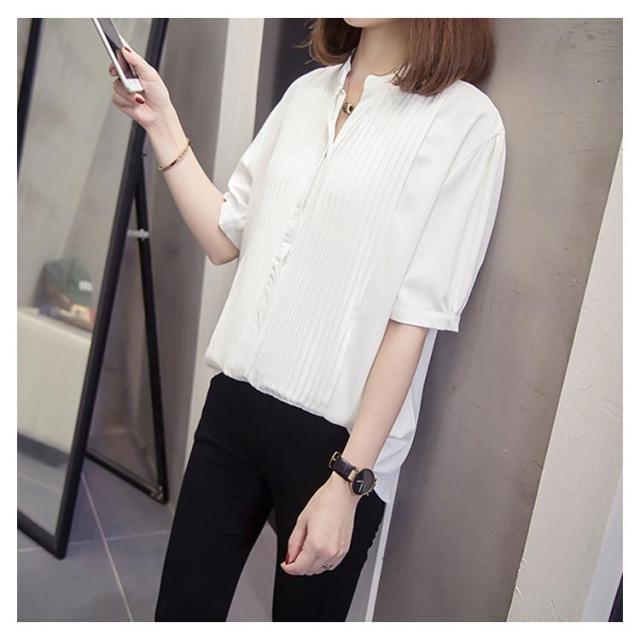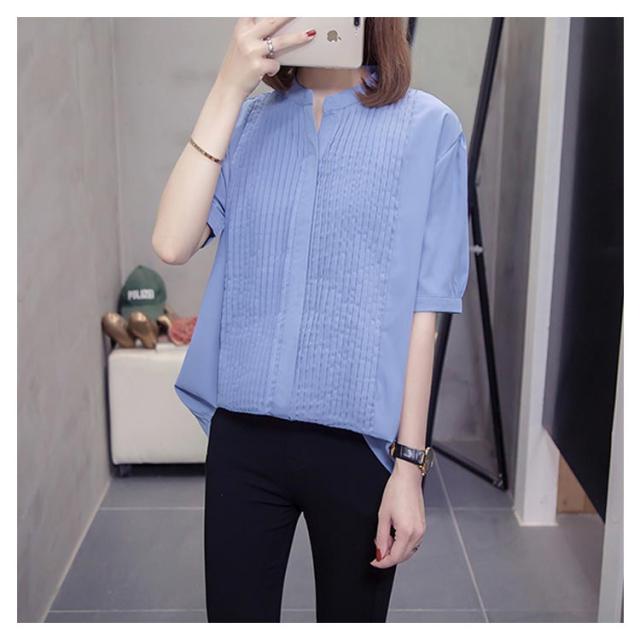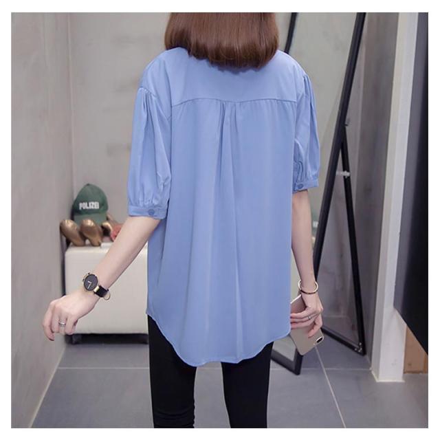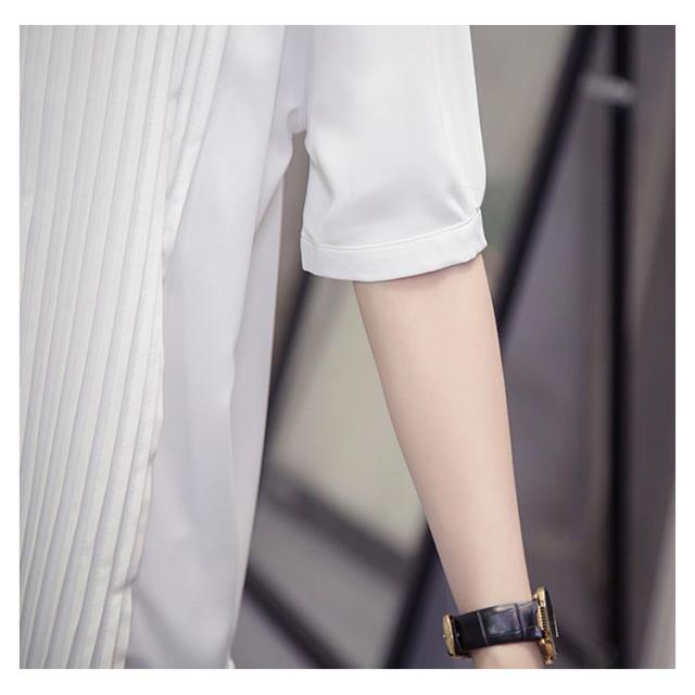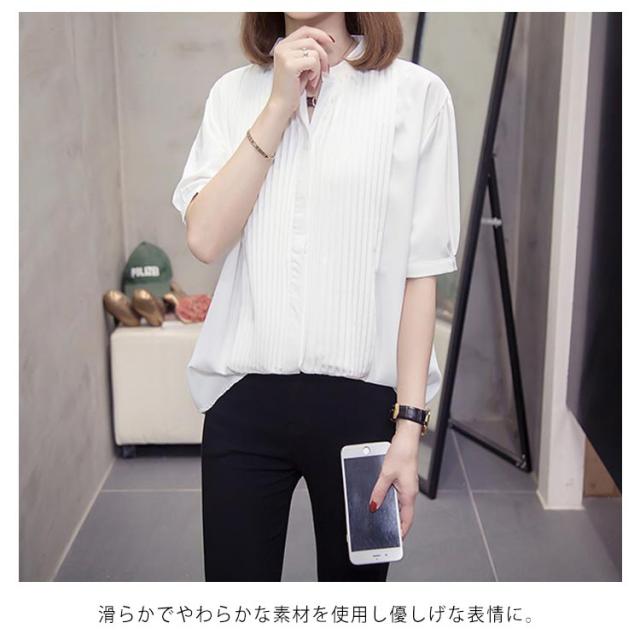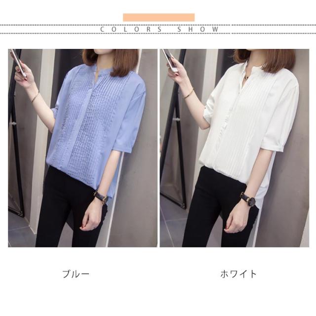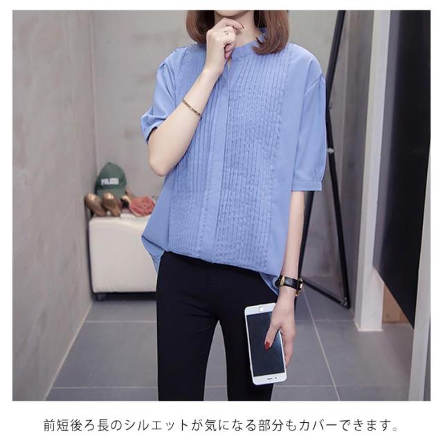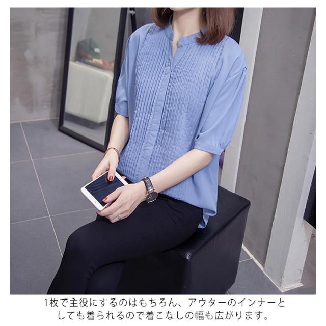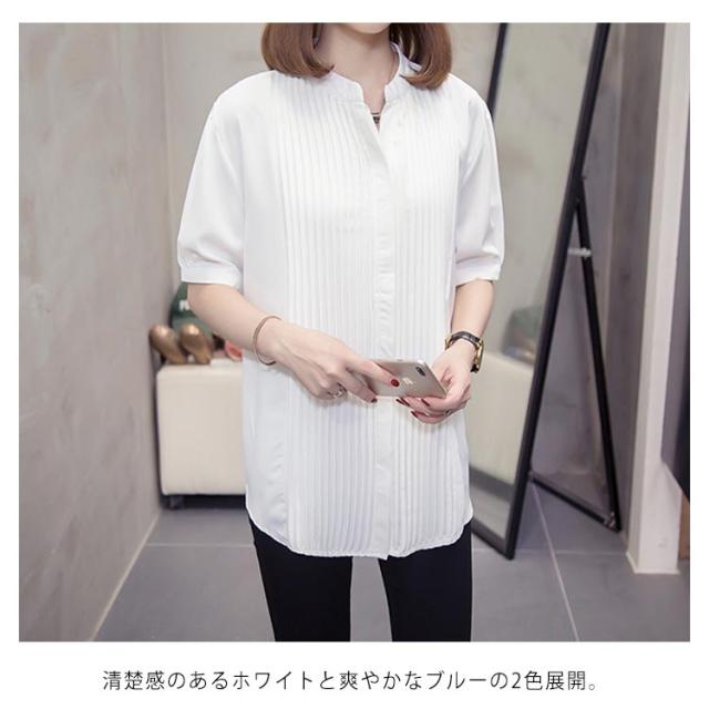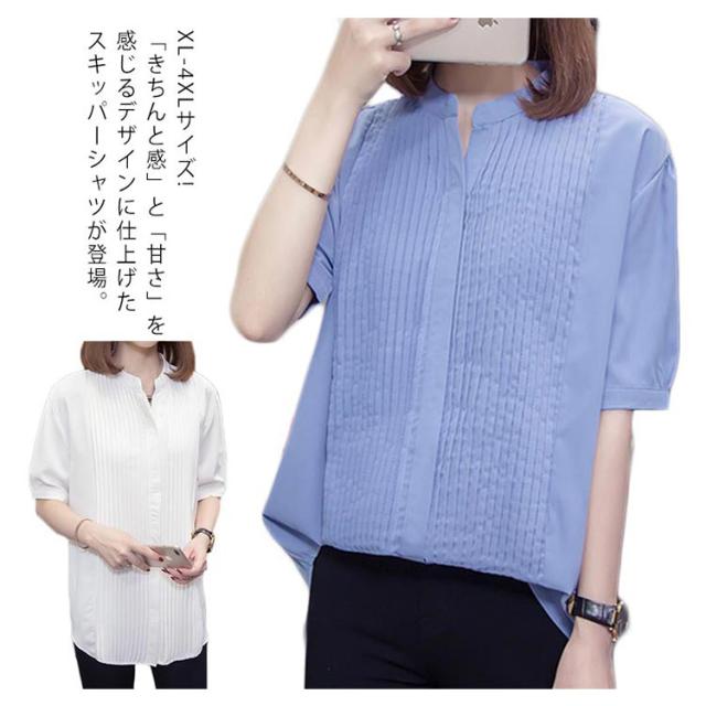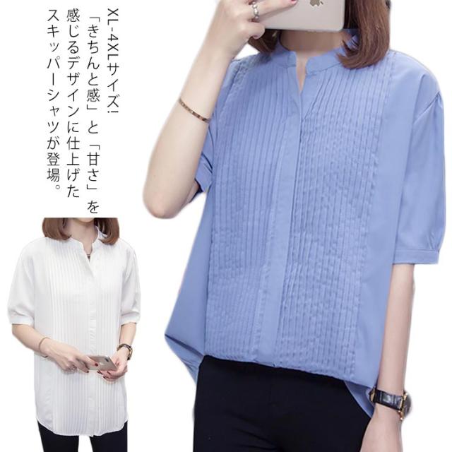 スキッパーシャツ レディース カジュアルシャツ シャツ ブラウス トップス 大きサイズ プリーツ加工 半袖 5分袖 スキッパー 大きサイズ ゆったり 体型カバー 春夏 おしゃれ 送料無料