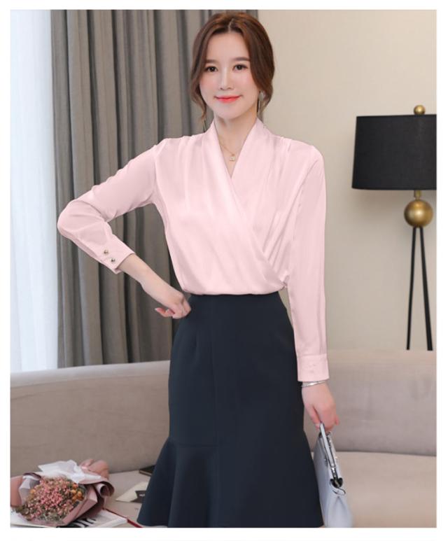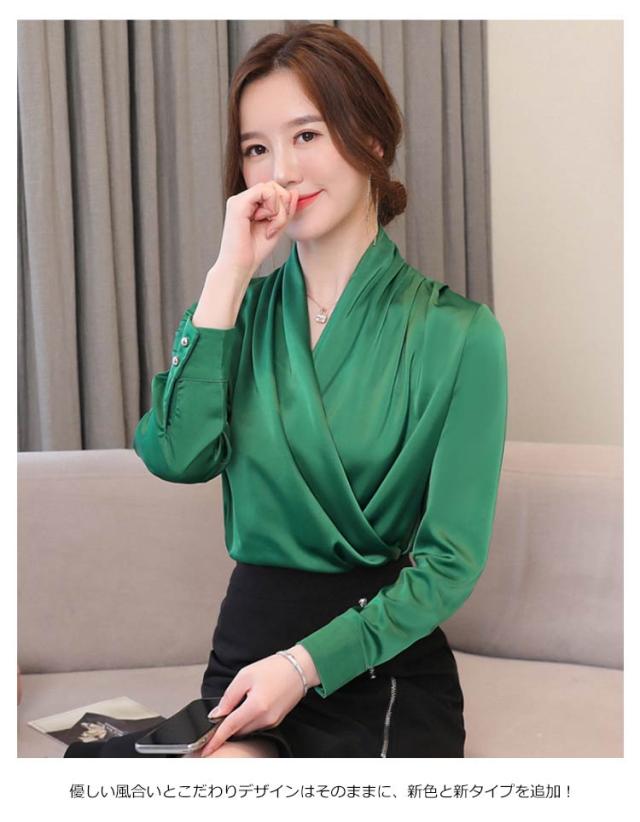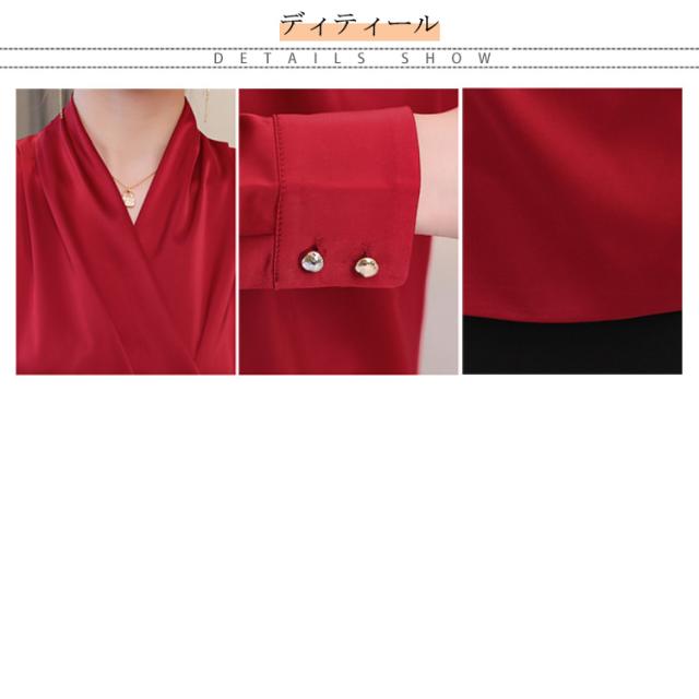 豊富なカラバリ展開!カシュクール Vネックブラウス レディース ブラウス シャツ トップス 長袖 ノースリーブ サテン調 Vネック OL オフィス フェミニン キレイめ 春 夏 秋 おしゃれ 送料無料