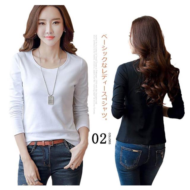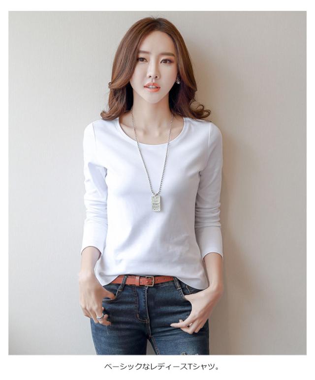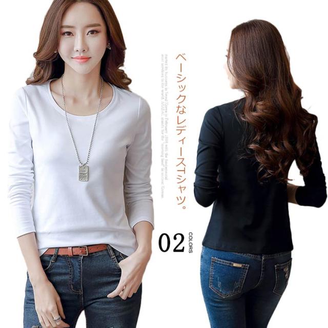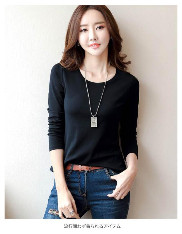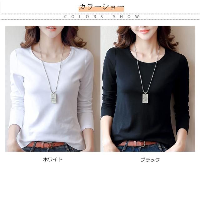 送料無料 Tシャツ レディース トップス tシャツ インナー ルームウェア カットソー 下着 部屋着 重ね着 長袖 クルーネック S-4XL 無地 春 秋