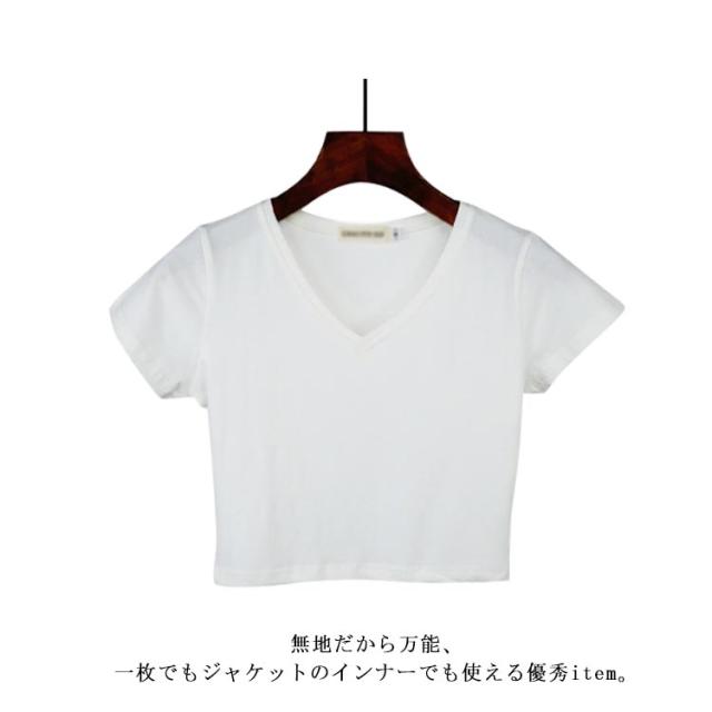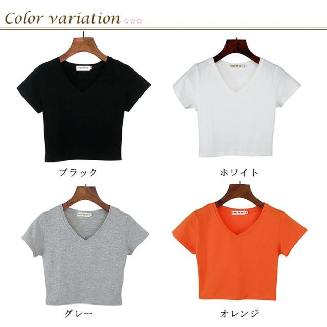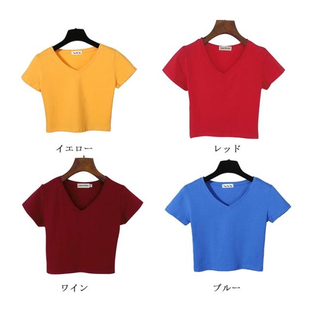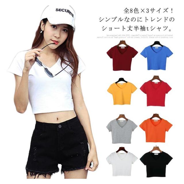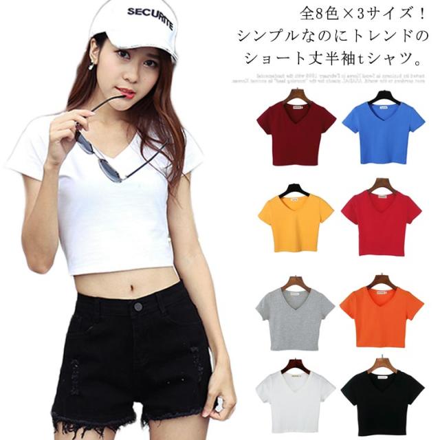 全8色×3サイズ!Vネックtシャツ tシャツ レディース Vネック 半袖tシャツ ショート丈 ダンス服 コンパクト シンプル 無地 春夏 夏