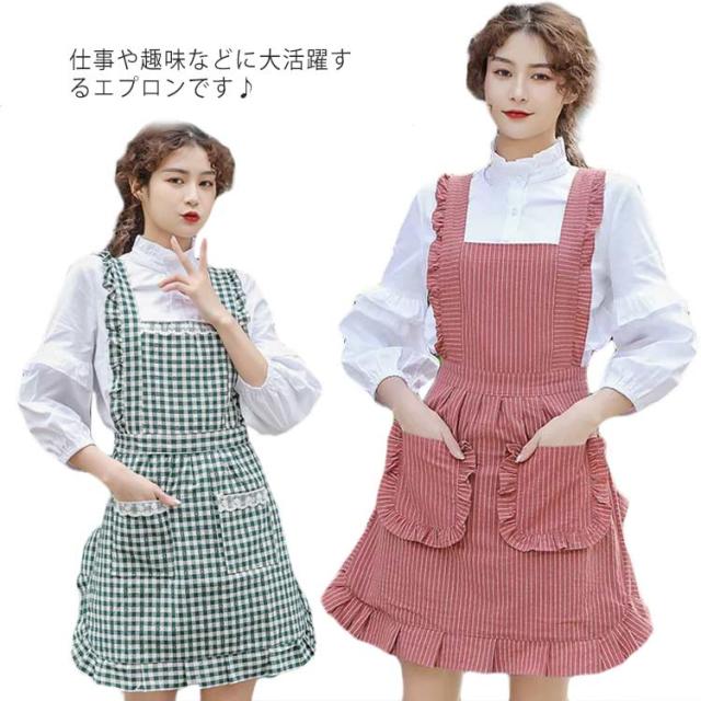 【送料無料】チュニック h型 防水 フリル 保育士 ふんわり ドレス シンプル 無地 綿100% 北欧 ポケット おうち時間 かわいい おしゃれ チェック柄
