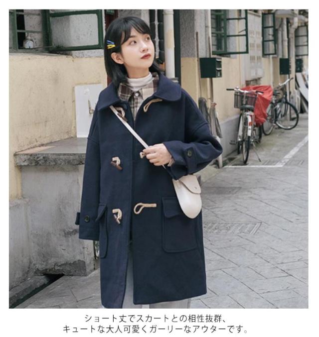 レディース 学生 大きいサイズ ロング 無地 襟付き アウター 制服 スクール メルトン 厚手 暖かい 防寒 通学 カジュアル 可愛い 中学生 高校生