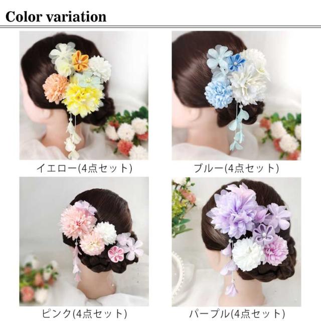 | 【かわいい髪飾り】下がり飾りが歩くたびに揺れ、華やかさをプラスしてくれます。ハレの日にはこんな豪華な髪飾りで着物姿もよりいっそう華やかに!美しい和装髪飾りです。 【和装髪飾りセット内容】髪飾4点セット。Uピン&クリップ仕様の髪飾りは簡単に取り付けられやすいです。綺麗に梱包しますので、新年、誕生日、クリスマス、バレンタインデーギフトとしてお勧めます。浴衣や着物などの和服だけでなく、普段使いにも便利な一本タイプです。 【用途】お花の髪飾りです。成人式、七五三の髪飾りは前撮りに最適。夜会巻き、アップヘア、サイドアップ、お団子、編み込みなど人気のまとめ髪の補助やアクセントにオススメです。子供さんは卒園式・七五三・お正月・お祝い事・桃の節句などにオススメです。大人の方は結婚式・パーティー・謝恩会・成人式・卒業式など華やかなお席の和装、振袖姿や浴衣のコーディネートにぴったりします。 【和装髪飾りのご注意】輸送中に花の形状は多少変形する恐れがありますが、整理してあげれば元に形状に戻ります。商品は手作りのため、サイズや色合いなどが写真と多少異なる場合がございます。 | |