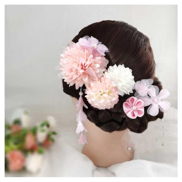 かんざし つまみ細工 ドライフラワー 梅 花 結婚式 藤下がり ちりめん パール 水引 紐 コーム クリップ Uピン 卒業式 振袖 七五三 浴衣 和装 着物 浴衣 袴 黄緑 ピンク