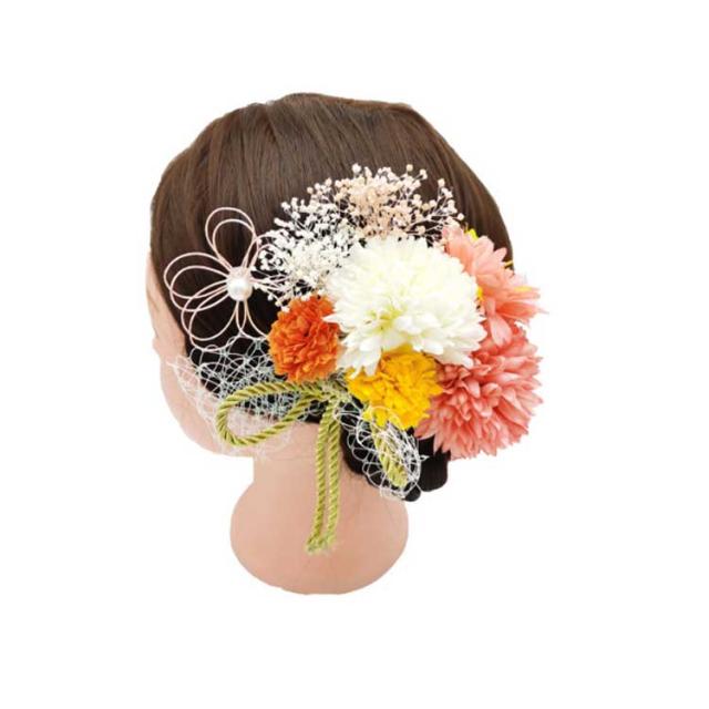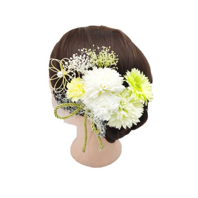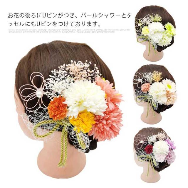 成人式 結婚式 かすみ草 つまみ細工 赤 ドライフラワー お花 水引 卒業式 七五三 和装 着物 浴衣 袴 手作り コーム Uピン パール 黄緑 紫 白 ショートヘア ウェディング