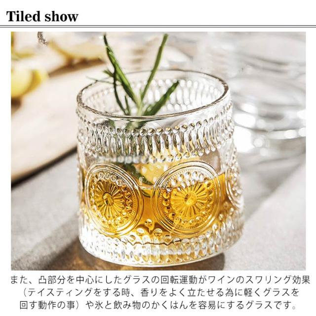 | シンプルで飽きなく、繊細なカットと厚みを兼ね備えるロックグラスです。どなたにも馴染む持ち心地となっております。 底部の凸部分のガラスを厚くし、傾けても倒れないように器の肩でバランスをとった意外性あふれる形です。 また、凸部分を中心にしたグラスの回転運動がワインのスワリング効果(テイスティングをする時、香りをよく立たせる為に軽くグラスを 回す動作の事)や氷と飲み物のかくはんを容易にするグラスです。 気分や好みに応じて、こちらのバー用ウイスキーグラスをバーボングラス・スコッチグラス・ウイスキーグラスとしてご利用ください。 | |