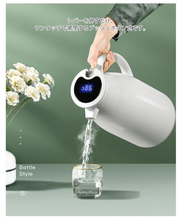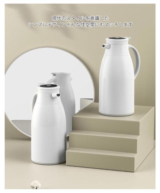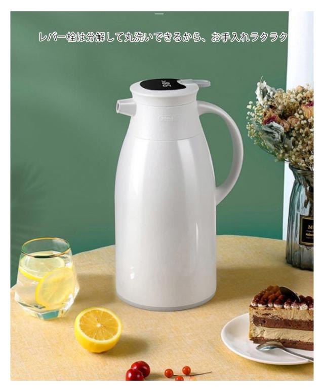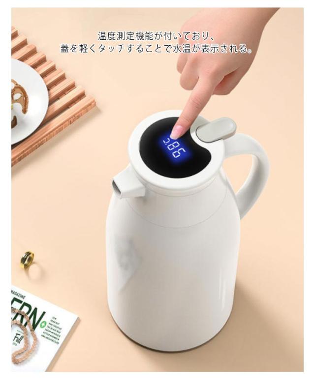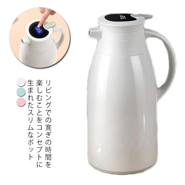保温ポット 大容量 まほうびん ポット 48H保温 ガラス製 温度見え 温度を示す 水筒 北欧 保温 保冷 スリム 新生活