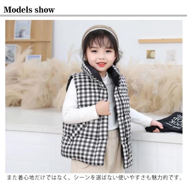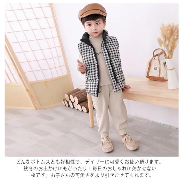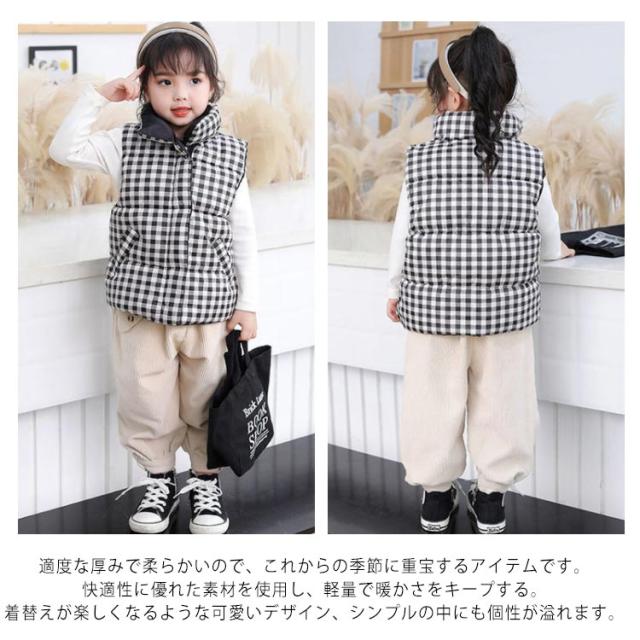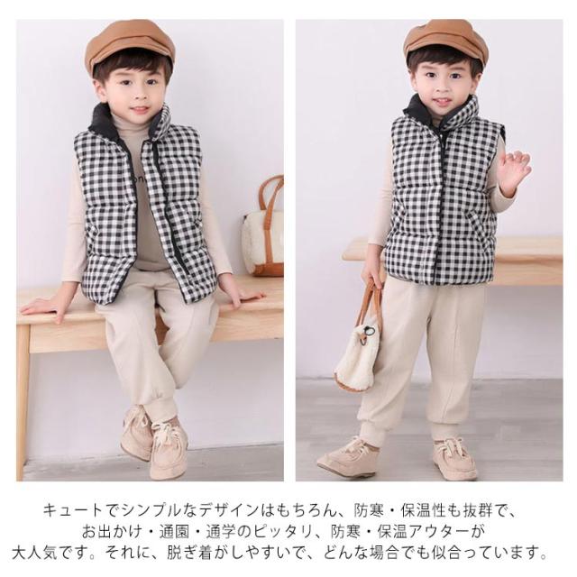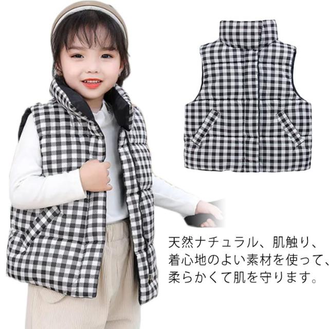 ベスト 中綿入り チェック柄 キッズ 男の子 女の子 子供服 ベビー インナー ダウンベスト アウター ベビー服 厚手 防寒 こどもベスト 子供 こども 羽織り