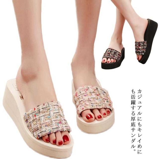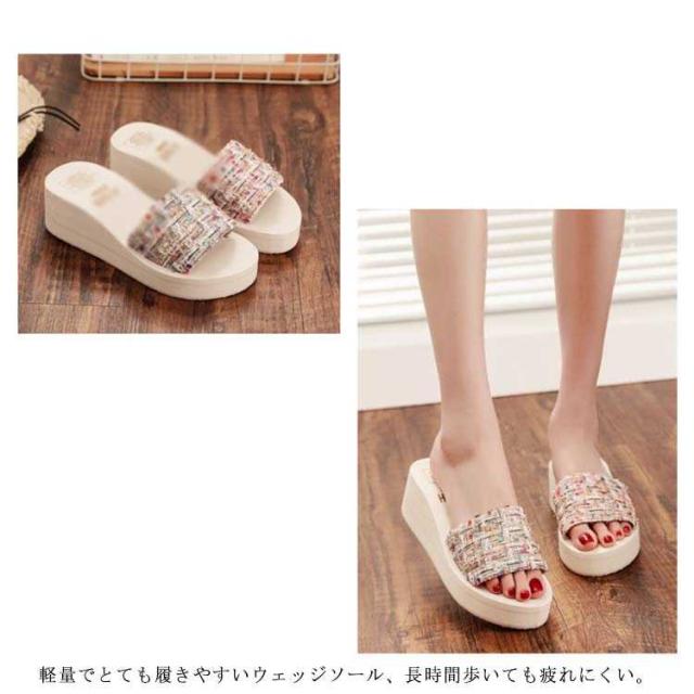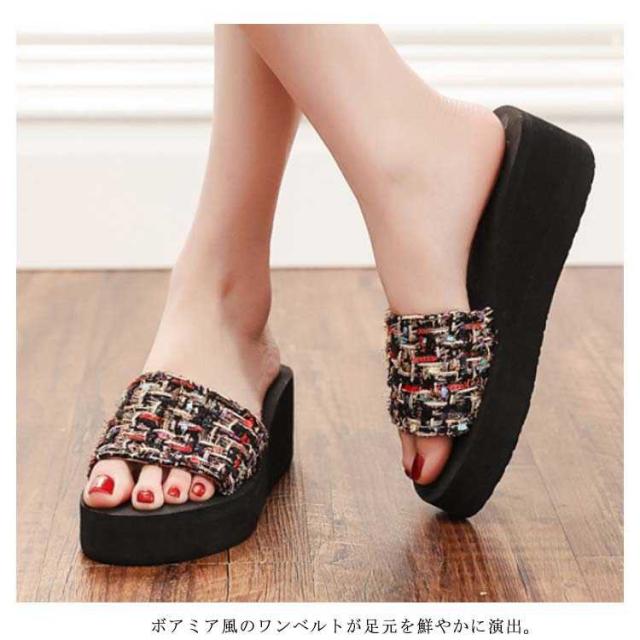 美脚サンダル 厚底 ビーチサンダル ウェッジソール レディース エスニック サンダル サマー ワンベルト サボ 歩きやすい オフィス 海 23-25cm