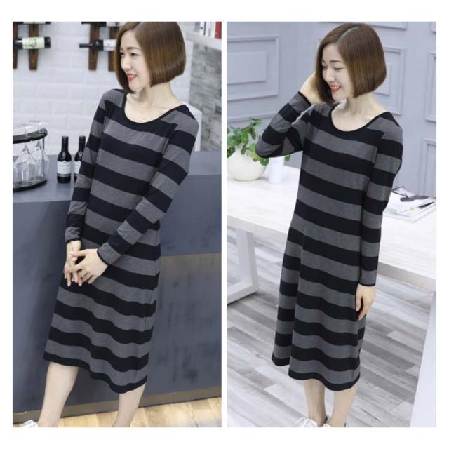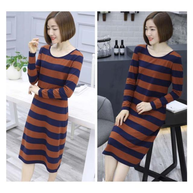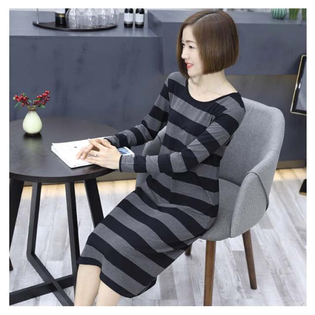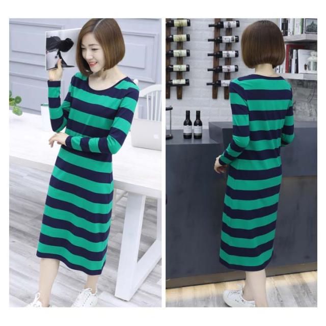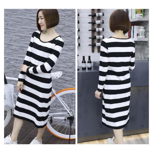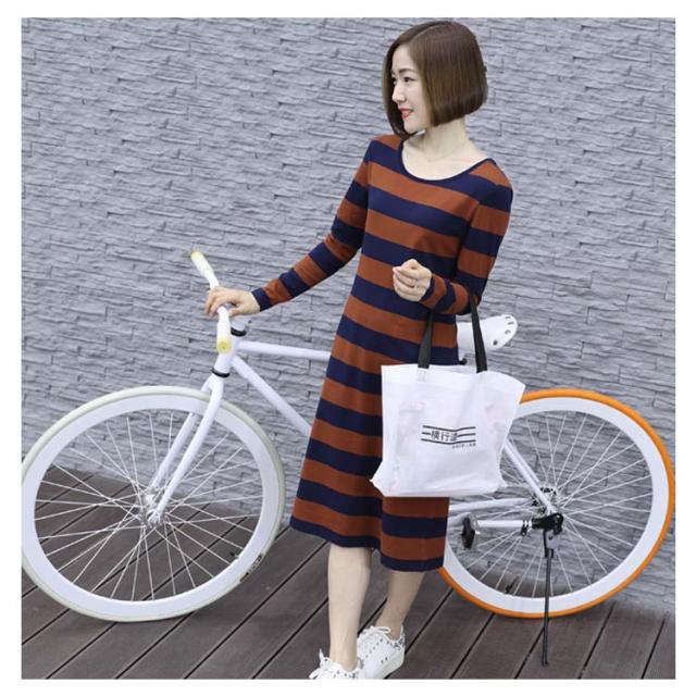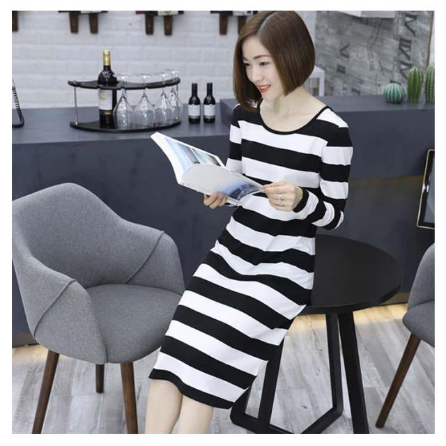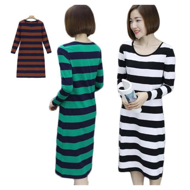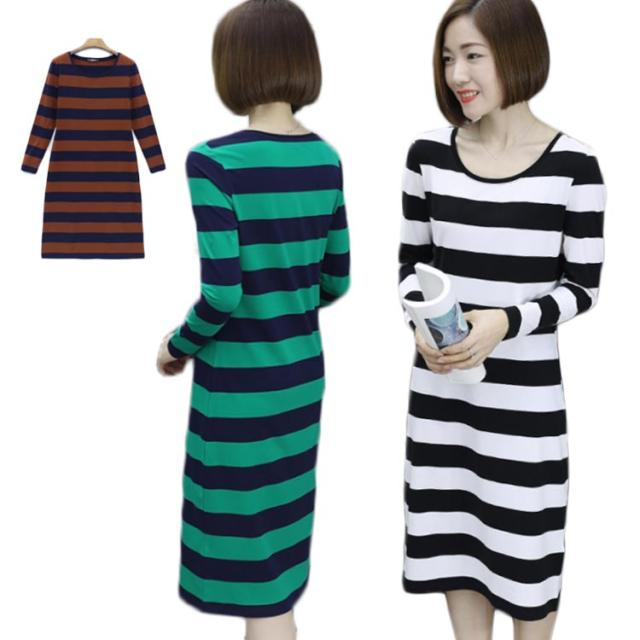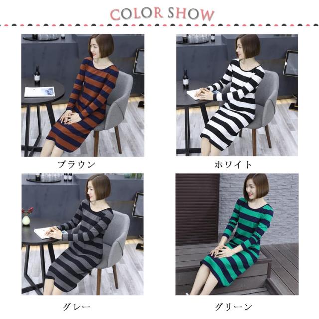 レディース ボーダー ワンピース 夏 大きサイズ ゆったり 丸襟 送料無料 ロングワンピース インナーワンピース ミディアム丈 伸縮性 シンプル カジュアル