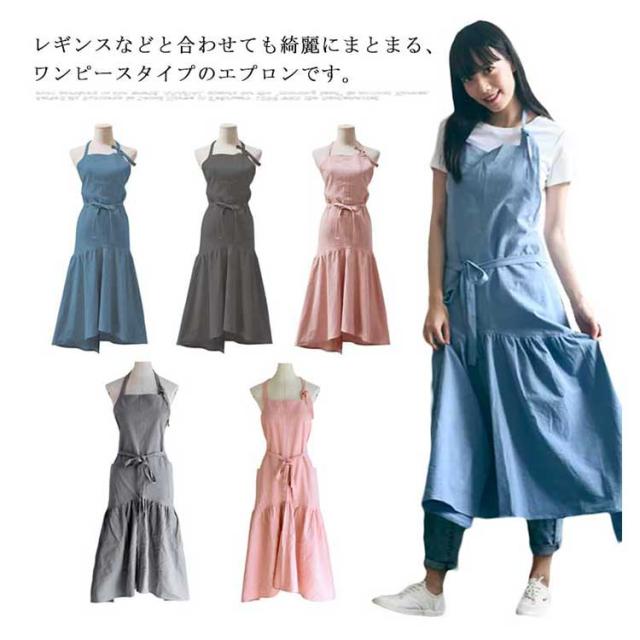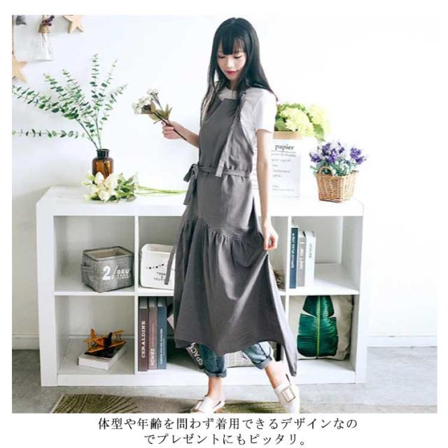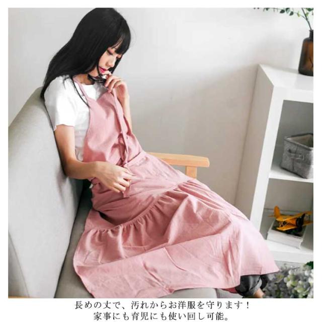 【送料無料】 ワンピースエプロン ロング チュニック レディース 薄手 フリル 保育士 ふんわり ドレス ポケット シンプル 無地 綿麻 北欧 花屋 飲食店 おうち時間 アウトドア コーデ