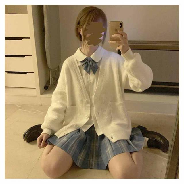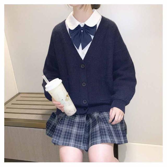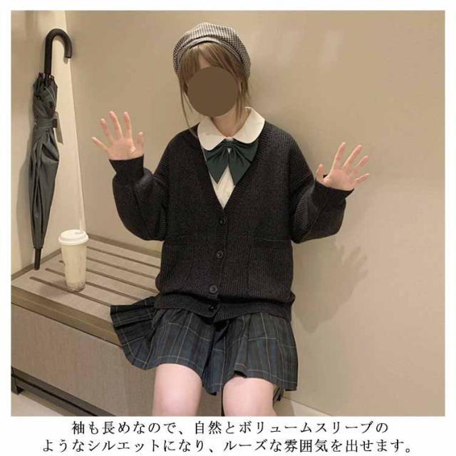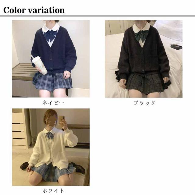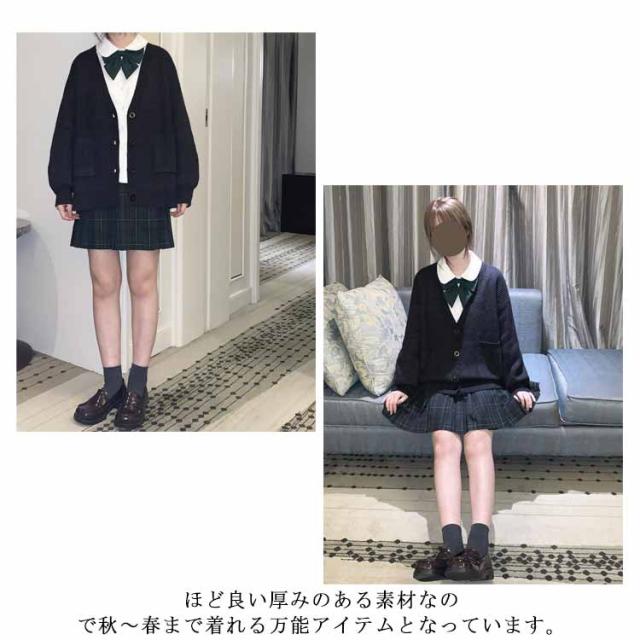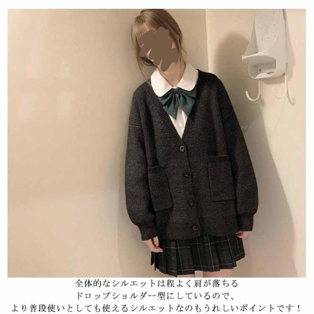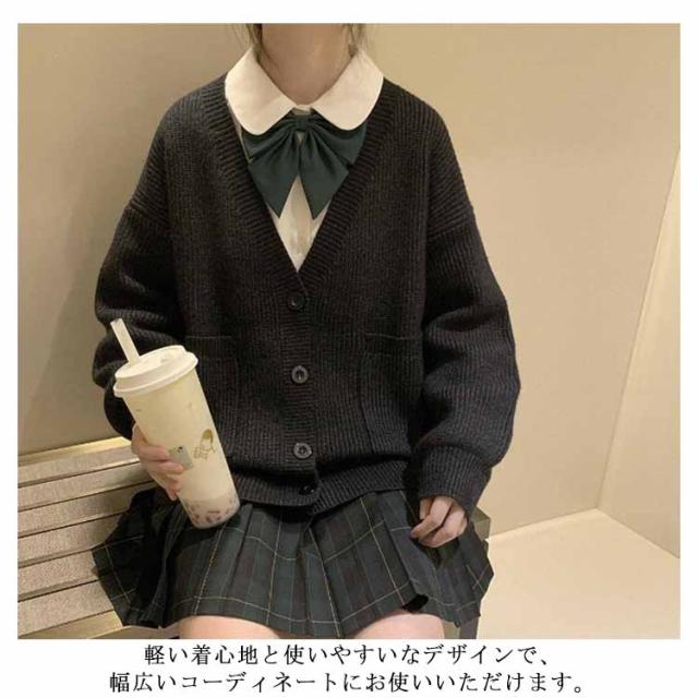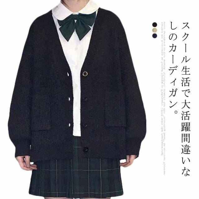 【送料無料】女子 制服 ゆったり Vネック 前開き ニットカーディガン リブ編み 秋冬 春 羽織り スクールセーター 学生服