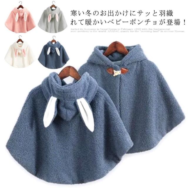 | 寒い冬のお出かけにサッと羽織れて暖かいベビーポンチョが登場! ふわふわで柔らかくて、いつまでも触っていたくなる手触り。 フードに耳が付いてるので、かぶるととってもキュートですよ。 出産祝いやお誕生日プレゼント、ちょっとしたギフトにもおすすめです。 | |